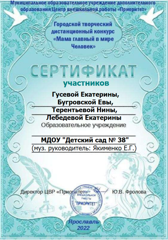 Муниципальное общеобразовательное учреждение средняя общеобразовательная школа "Образовательный комплекс № 34 имени Лататуева В.Н." Центр развития ребенка - детский сад №38 города Ярославля