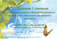 Муниципальное общеобразовательное учреждение средняя общеобразовательная школа "Образовательный комплекс № 34 имени Лататуева В.Н." Центр развития ребенка - детский сад №38 города Ярославля